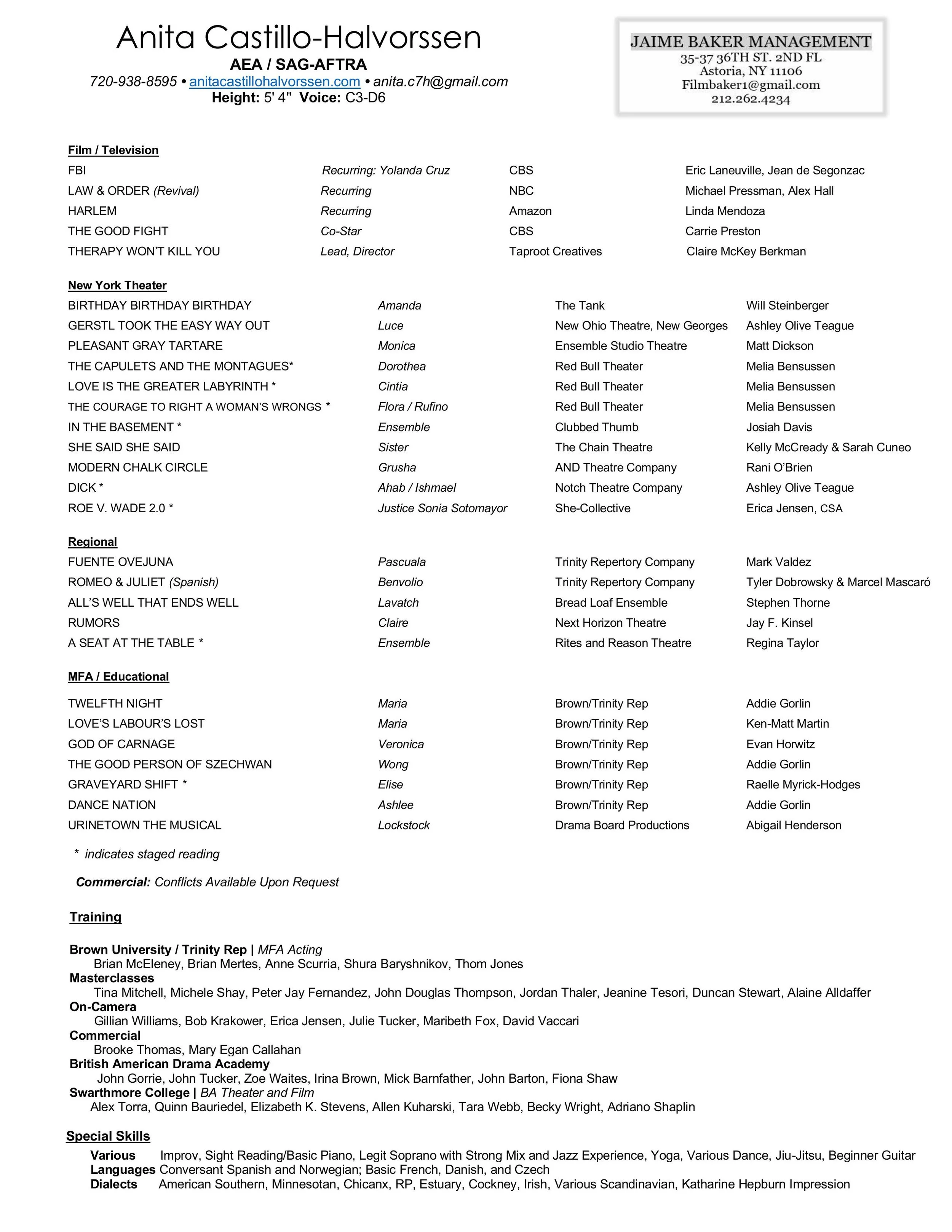 Other theatrical credits – producer, director, media designer, playwright, composer, dramaturg – available upon request.